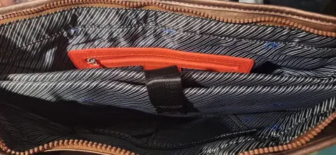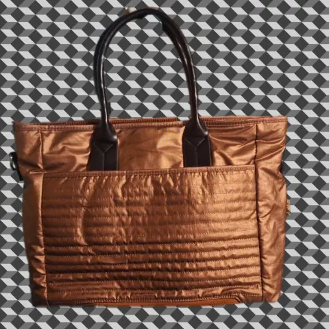 Porta laptop marca Clōe color bronce, 40x30cm, impermeable, con correa, nueva con etiqueta.