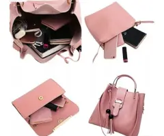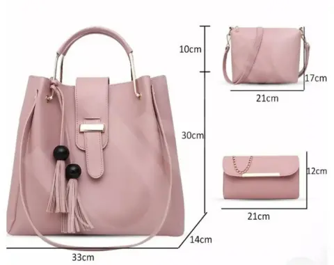 Set de 3 bolsas rosas nuevas , bolsa amplia bandolera con correa y asas, bolsa cosmetiquera de cierre con correa , bolsa tipo cartera con cadena ,tiene broches y acabados de metal dorado, muy elegantes!