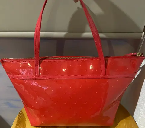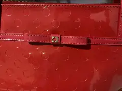 Tote Kate Spade charol. Diseño en acabado charol, excelente estética ( dos o tres usos) amplia moderna y con el diseño distintivo clásico de la marca ( moño) al frente.