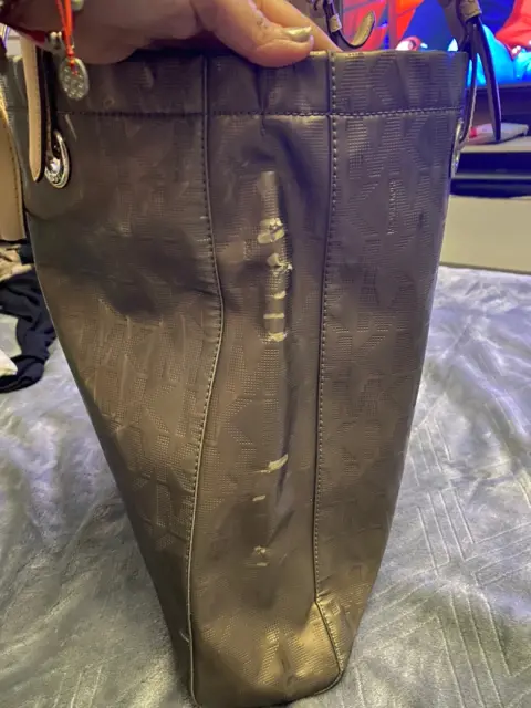 Tote marca Michael Kors muy grande y espaciosa color nickel (retro) que te va a permitir llevar lo que necesitas y más con estilo y de manera práctica. Tiene ligeros desgastes en los laterales