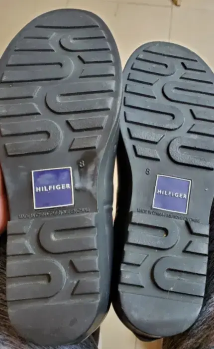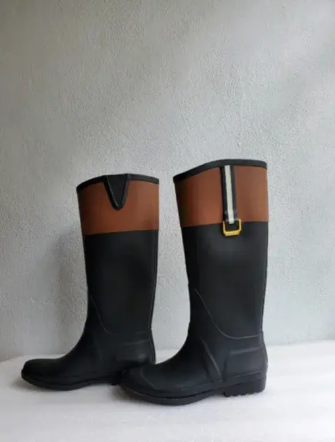 Botas impermeables de lluvia de la Marca Tommy Hilfiger- Botas impermeables en tono negro con panel de contraste en tono cafe- Franja y hebilla con la firma de la marca- Forro interior suave- Suela de Goma dura que brinda tracción en calles resbaladizas- Talla 5 MEX. 8 USA- Sin caja- Usadas un par de veces- Excelentes Condiciones- Impecables