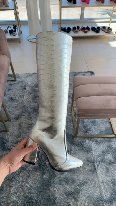 Bota alta Plata. Bota nueva Color Plata, altura abajo de la rodilla, tacón 9 cm, disponible en #3 y #5