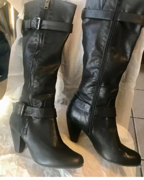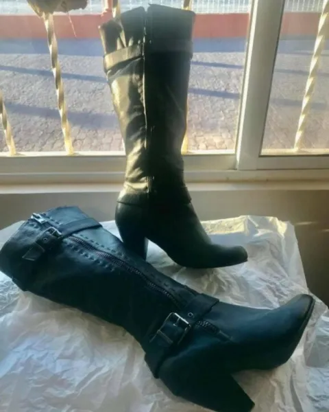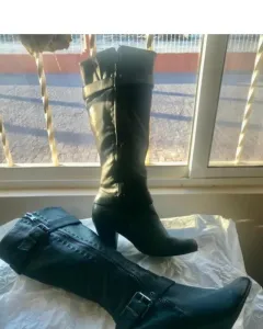Bota de piel color negro. Bota de piel color negro con diseño de evilla y cierre aun lado ,tacon de 4 pulgadas