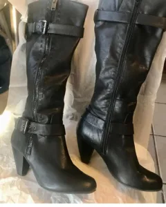 Bota de piel color negro con diseño de evilla y cierre aun lado ,tacon de 4 pulgadas