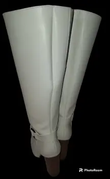 Bota larga color hueso. ESPECIFICACIONESAltura 9.5Color HuesoTipo AltaBeneficio Ancho normalMaterial SintéticoOcasión VestirDETALLES DEL ARTÍCULOEnvuelve tus pasos de estilo gracias a esta bota con efecto carey en aplicación y tacón robusto.Talla: #25 Mx