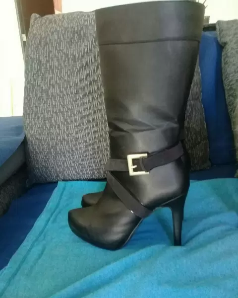 Botas. Bota de tacón con ligera plataforma en buen estado de una sola puesta. Lo largo es hasta abajo de la rodilla.Cierre a los costados en buen estado.Tacones y suela en buen estado.