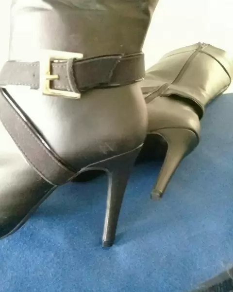Bota de tacón con ligera plataforma en buen estado de una sola puesta. Lo largo es hasta abajo de la rodilla.Cierre a los costados en buen estado.Tacones y suela en buen estado.