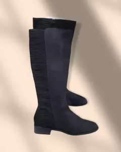 Botas a la rodilla de Kelly & Katie. Kelly & Katie Lanner High Boots, talla 7-Mex/10-US, color negro sólido, silueta agrietada con detalles en la espalda, eje alto, hecho con parte superior de gamuza sintética, cierre interior con cremallera, punta redonda, Plantilla ligeramente acolchada, aprox. Altura del eje de 15 "Aprox. Circunferencia de ternera de 14", talón de bloque apilado 1 ¼ ", suela sintética, nuevo en la caja.