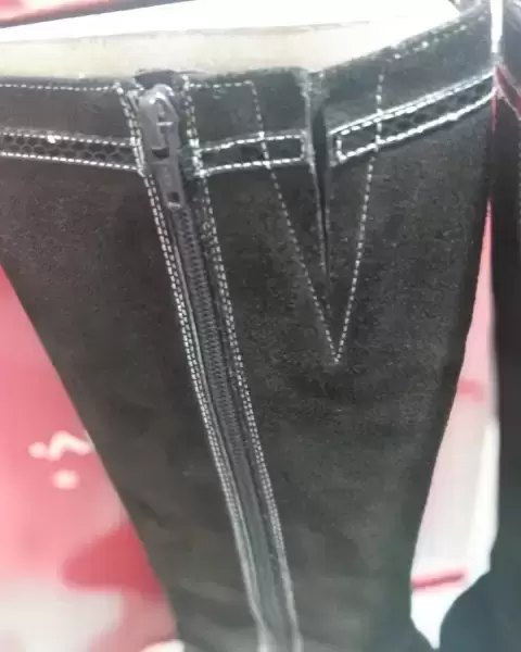 Botas Altas en Gamuza. Cómodas botas hasta la rodilla, en gamuza color cafe oscuro con detalles dorados que resaltan. Pequeña avertura a los lados internos para mayor comodidad. Tacón lacado de 9cm, muy cómodos por ser tacón ancho. Talla: 22.5💝 Si te gusta algo más de mi Clóset podemos armar un paquete a un excelente precio!!