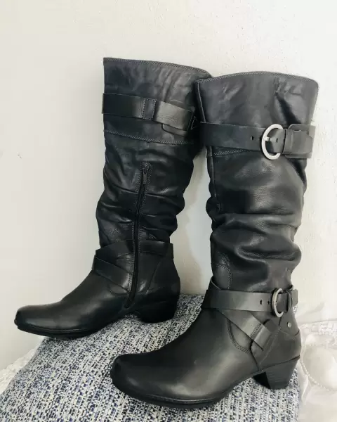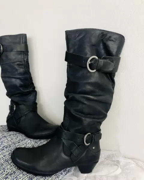 Número 41, poco uso, piel, sin detalles, negras, altas, tacón bajo cómodas