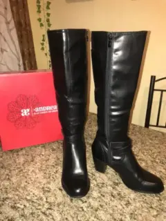 Botas 👢 Andrea. 👢👢Botas largas de marca Andrea están ✅semi nuevas son de cierre y con adorno de ebilla tal cual se muestra en las imágenes ✅sin ningún detalle🥰 solo tienen 3 puestas, viene un poco sucia la suela fue por las pocas veces que se usaron ✅están padrisimas 💖🤩✅💥El Precio ya es el Definitivo💥 Aproveha y combínalas con tus mejores outfits 💖