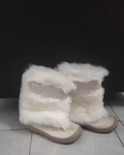 Botas beige de gamuza con peluche, son del 2.5, no son totalmente nuevas, sin embargo se encuentra en buen estado, muy linda y cómodas.