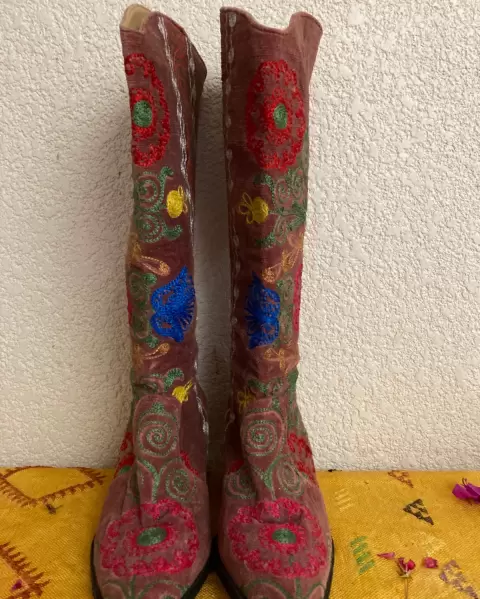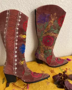 Botas bordadas a mano, estilo Tejano,diseño exclusivo.FloreadoPanaTemporada primavera/Verano