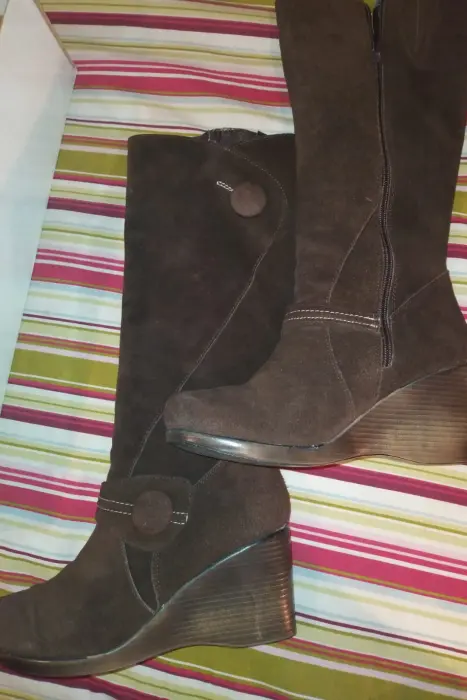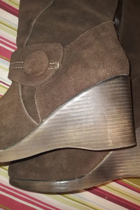 Botas café de gamuza. Botas café de gamuza, Número 4.5Tacón de 7.5 cmEn perfectas condicionesSuelas recién pintadas (por estética)