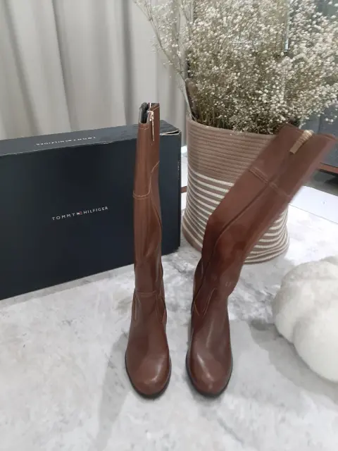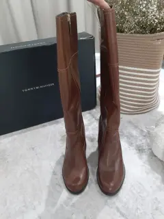 BOTAS CAFE LARGAS. BOTAS CAFE CON TACÓN, TALLA 4.5 MEX, en su caja original de Tommy H, compradas en palacio con etiqueta de precio ($4099.00), estaban guardadas y la humedad hizo de las suyas pero solo en una parte del ulterior de las botas por lo que no se nota nada al uso....anexo fotos.