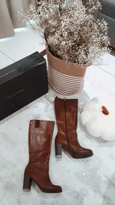 BOTAS CAFE CON TACÓN, TALLA 4.5 MEX, en su caja original de Tommy H, compradas en palacio con etiqueta de precio ($4099.00), estaban guardadas y la humedad hizo de las suyas pero solo en una parte del ulterior de las botas por lo que no se nota nada al uso....anexo fotos.