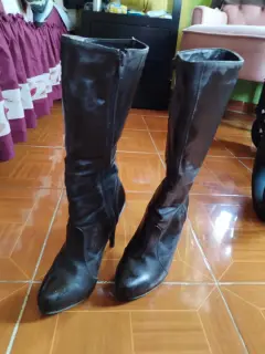 Botas cafés largas. Bonitas botas largas en color café, con plataforma y tacón de 10 CM, detalles sintéticos