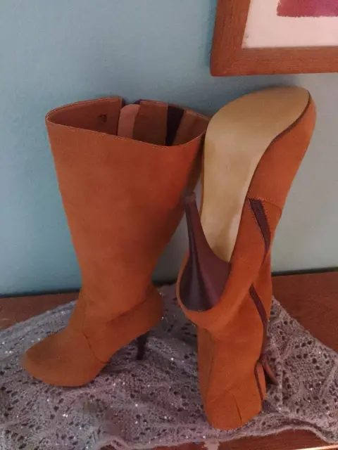 Botas camel. Hermosas botas color camel, gamuza, nuevecitas, número 5, sin caja, llegan abajo de la rodilla, excelente oportunidad