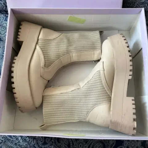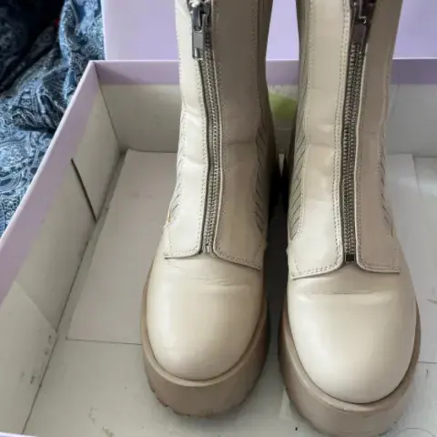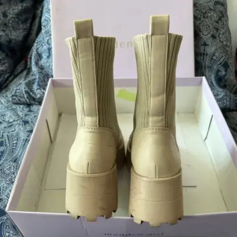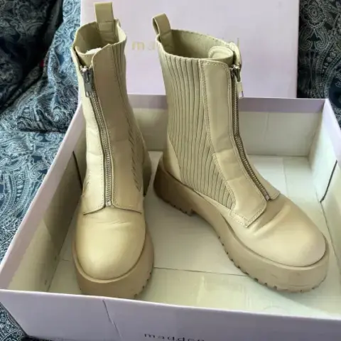 Botas Claras Madden Girl.. Color claro, poco uso, muy cómodas 3.5. Los cierres funcionan perfectamente bien y no se bajan al andar.