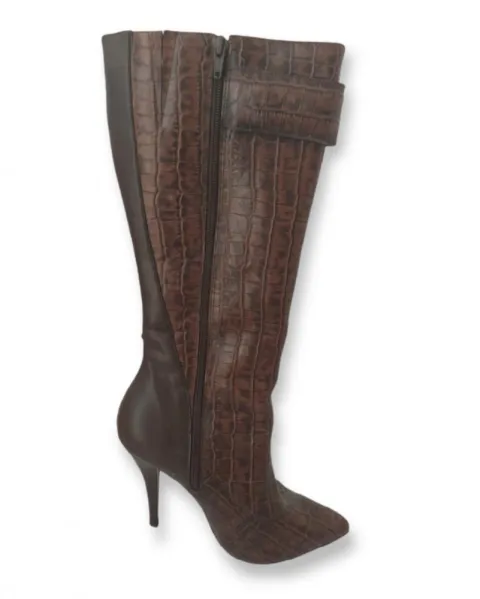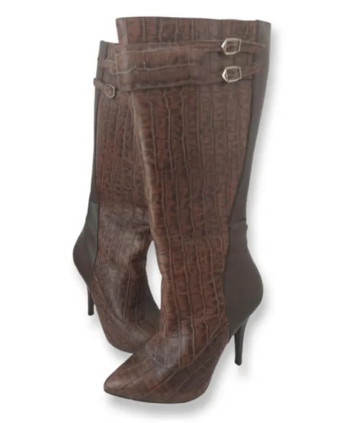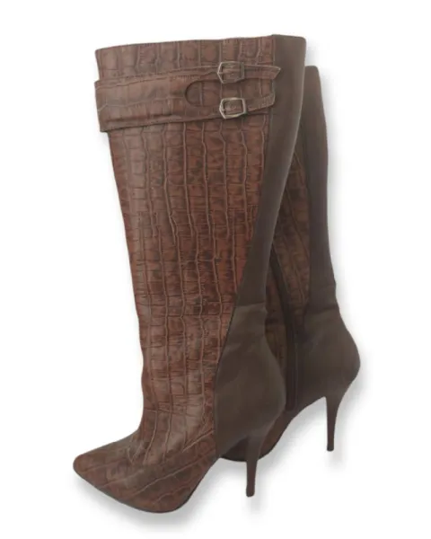 Botas con print de cocodrilo color café, tacón de 10 cm. Quedan a 4 y 4.5.
