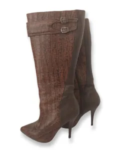 Botas con print piel de cocodrilo. Botas con print de cocodrilo color café, tacón de 10 cm. Quedan a 4 y 4.5.