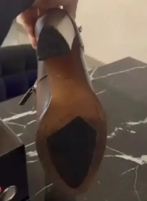 Con acabado sombreado pintado a mano, aplicaciones de cristales auténticos en los costados y sobre hebilla metálica.Suela de cuero de doble densidad, con injerto de TPUForro y plantilla en piel de bovinoAltura de tacón de aproximadamente 9 cm.Las use por horas,en realidad pudiera decir están nuevas.