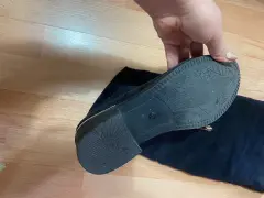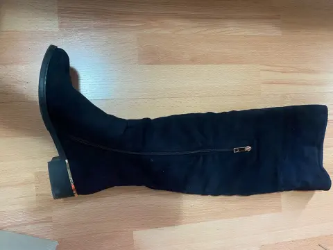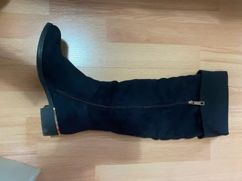 HERMOSAS BOTAS LARGAS, CUBREN LA RODILLA, son súper cómodas porque son flats, la caña es de tela suavecita por que son muy flexibles, tienen dorado en la parte del talón. En buen estado. Se entregan en caja, no rotas ni descosidas ni nada de eso. Les queda mucha vida