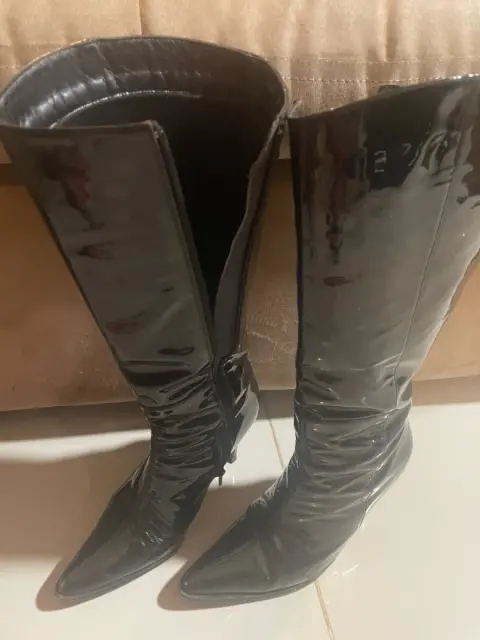 Botas de charol negro. Usadas en perfecto estado, totalmente de piel, en suela y corte, talla 23.5