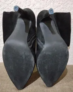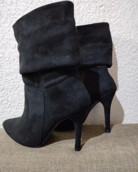 Lindas botas de gamuza negras, corte textil, forro textil, suela sintética, tacon de 11cm, en perfecto estado.