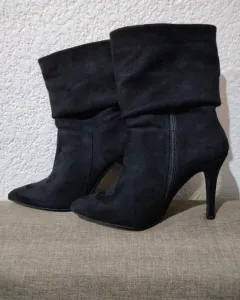 Botas de gamuza. Lindas botas de gamuza negras, corte textil, forro textil, suela sintética, tacon de 11cm, en perfecto estado.