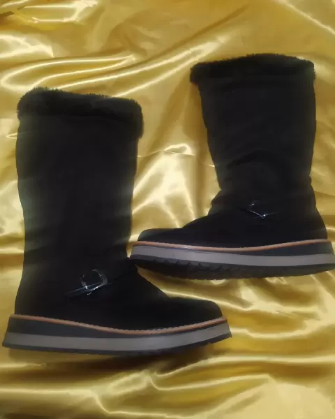 Botas de Gamuza negra con broche, forro interior de borrego.
