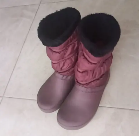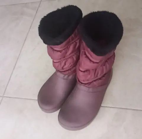 Botas crocs originales, color vino, número 25, muy cómodas y muy calientitas porque tienen peluche por dentro, uso de un par de veces, se mantienen en perfecto estado.
