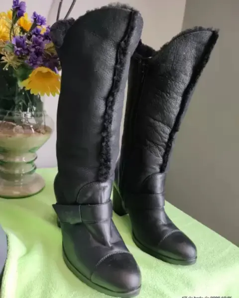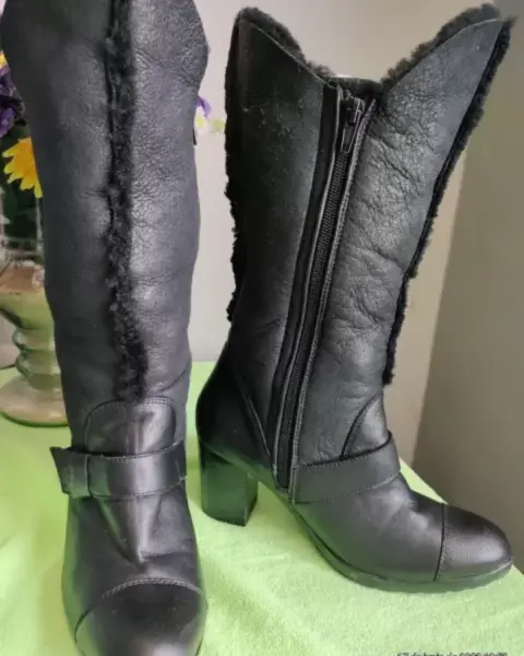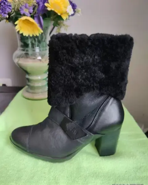 Bonitas botas de piel negras,del #3 1/2 tacón 7cm. de alto, tacón cuadrado se puedes doblar de la parte arriba y se usa como botines.