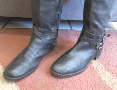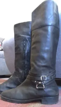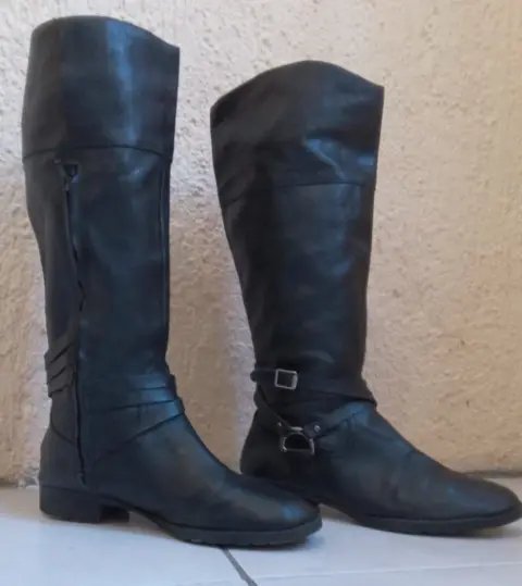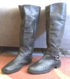 Estás botas son usadas de varios años pero aún tienen bastante vida, la piel está íntegra, es súper suave. Tienen cierre a media altura. Para chamorro mediano o delgado. Del número 26 fieles a la talla. Tiene detalles en la parte superior por dentro que se le ha descarapelado el barniz negro que recubre la zona, pero todo el forro está íntegro y horma muy bien. Tacón bajito.