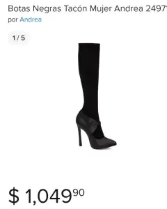 Botas de piel con tela Andrea. Eleva tu look junto a esta bota tipo legging con material elástico que se ajusta a tu pierna, textura aterciopelada y hebilla decorativa sobre el empeine. Una sola puesta.CARACTERÍSTICAS PRINCIPALES:-Altura: 13.5- Tipo: High boot-Altura: 13.5 cmMÁS DETALLES:Peso del paquete: 0.79 kgMaterial: textil Modelo: 2497143Envío todos los días de lunes a sábado.