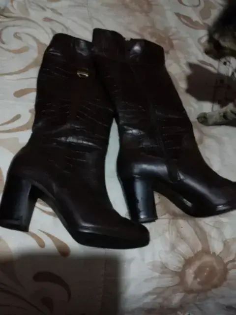 Botas Flexi corte piel, forro y suela sintético tacones 6cm, color café, cierre lateral, muy buen estado.