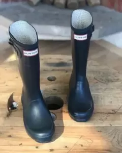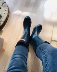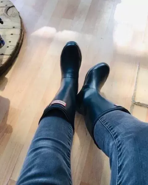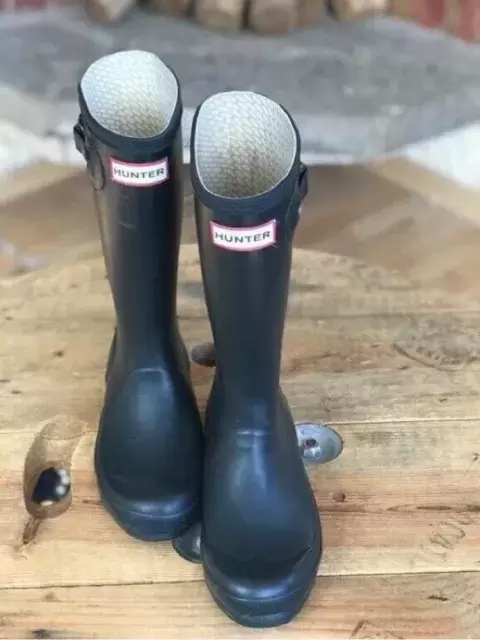 Botas Hunter. Padrísimas botas de lluvia son cortas ojo con lo que menciono nada más las usé tres veces pero cuando las compré no había de mi número entonces las compré de niña dice 22 pero yo soy 3:30 en una foto en las tengo puestas me quedan justas es por eso que las estoy vendiendo Super buen precio de cómo me costaron