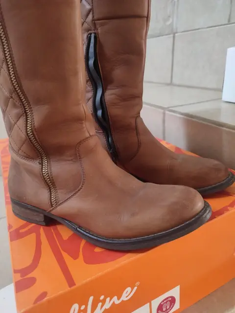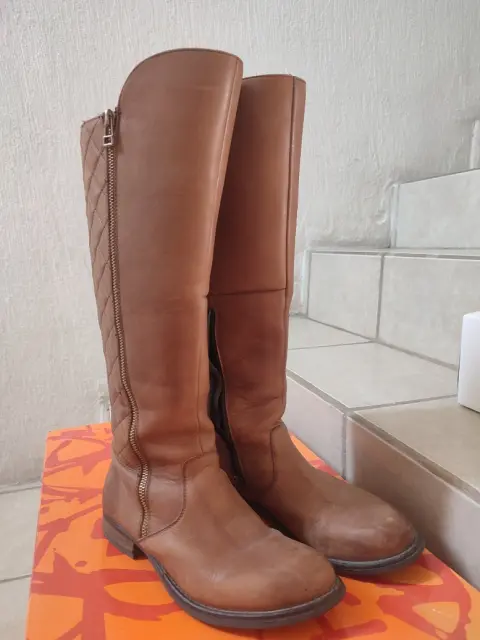 Botas largas usadas en perfectas condiciones Material sintético con acabado aterciopelado De talla son 25, pero son amplias, quedan a 5.5 sin problema