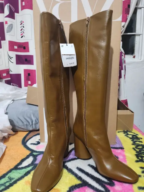 Hermosas botas largas, nuevas con etiqueta, de cierre, no manchadas, no dobladas.