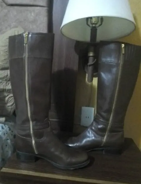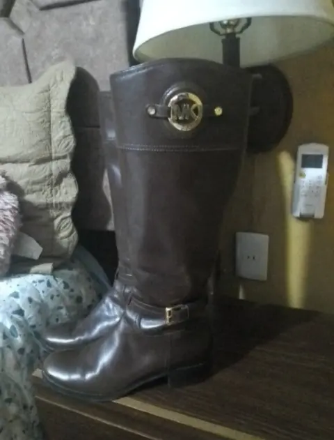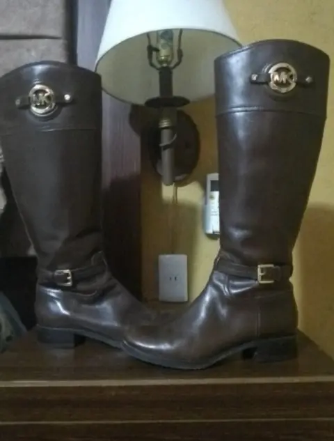 Botas de cuero en perfecto estado que llegan justo debajo de las rodillas por MK usadas un par de veces pero con muchísimo cuidado de hecho muy poco uso cualquier duda estoy a tus órdenes con toda confianza puedes preguntar lindo día