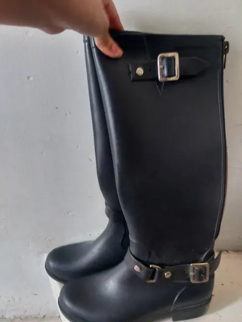 Botas para lluvia. Las compré en Amazon, son cómodas a pesar de ser un poco pesadas por el material impermeable. Sin detalles, puedes apreciar la suela sin desgastes.