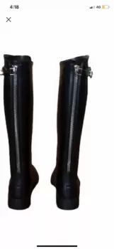 Botas para lluvia Ferragamo. Botas para lluvia con cierre atrás y también de lado traen un broche para cerrarlas, son de plástico para lluvia y tienen unos rayones a los lados de la parte del talón que se le hicieron por el roce de los pies, están en la última foto, por esos rayones al precio final se decintarán 800 pesos.