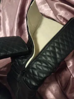 Botas que llegan abajo de la rodilla, negras sin marca, número 5, sin detalles.