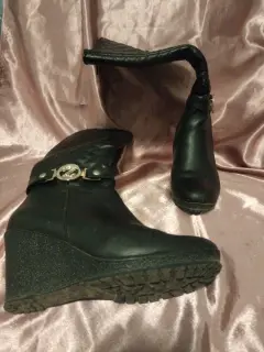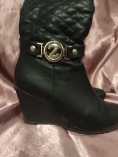 Botas semi largas. Botas que llegan abajo de la rodilla, negras sin marca, número 5, sin detalles.