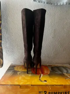 Botas tacón alto. Botas color café de tacón de aguja y plataforma de gamuza seminuevas talla 4