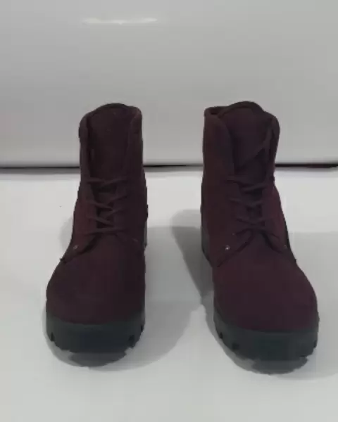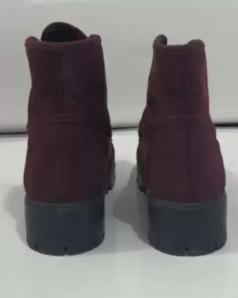 Botas vino. Botas talla 24. Color vino con agujetas color vino, suela negra. Corte: textil, estilo gamuza. Suela: sintética.