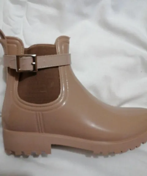 Botas NUEVAS para la lluvia, color maquillaje, protégete con estilo, super lindas, tengo disponible en talla del 2 al 6 (solo menciona que talla envió), con suela antiderrapante de uso rudo, vienen en caja, si necesitas un número diferente, dime y te los subo para su compra :)