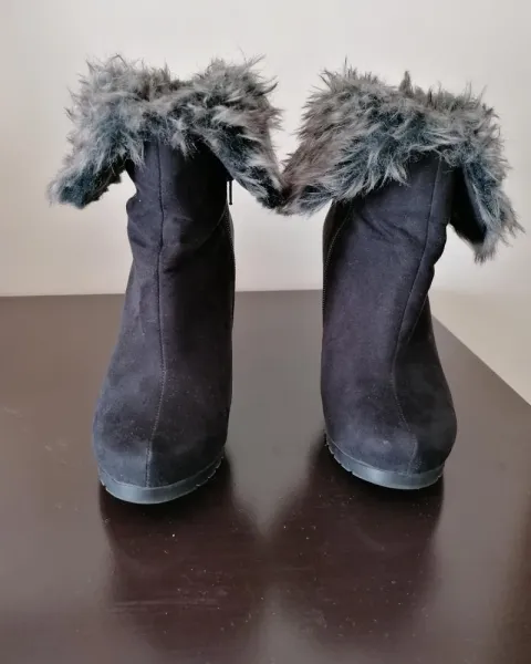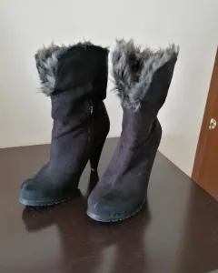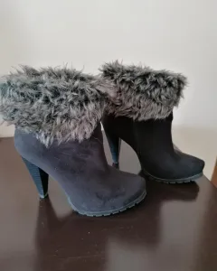 Botines negros. Lindas botas negras con peluche, se puede usar de dos formas, tacon de 10.5cm, tienen cierre en la parte interior, en perfecto estado