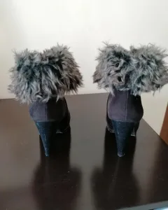 Lindas botas negras con peluche, se puede usar de dos formas, tacon de 10.5cm, tienen cierre en la parte interior, en perfecto estado