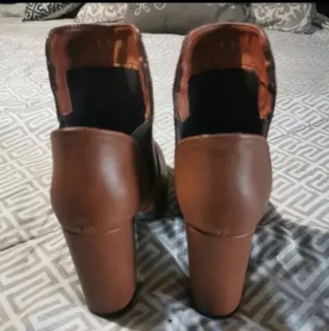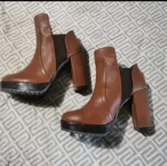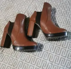 Bonitos botines color miel, talla 24.5Tipo cowboy ideales para usar con lo que quieras, shorts, jeans, vestido, etc.Detalle: le quite las cintas que se ataban al tobillo xq me rosaban y yo soy de piel delicada, pero no sé notan para nada al exterior de la bota